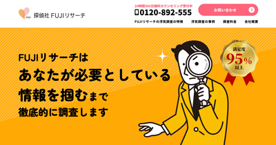 | 調査項目 | 浮気調査・不倫調査 人探し調査・家出調査 結婚前・嫁婿問題 個人・企業信用調査 など |